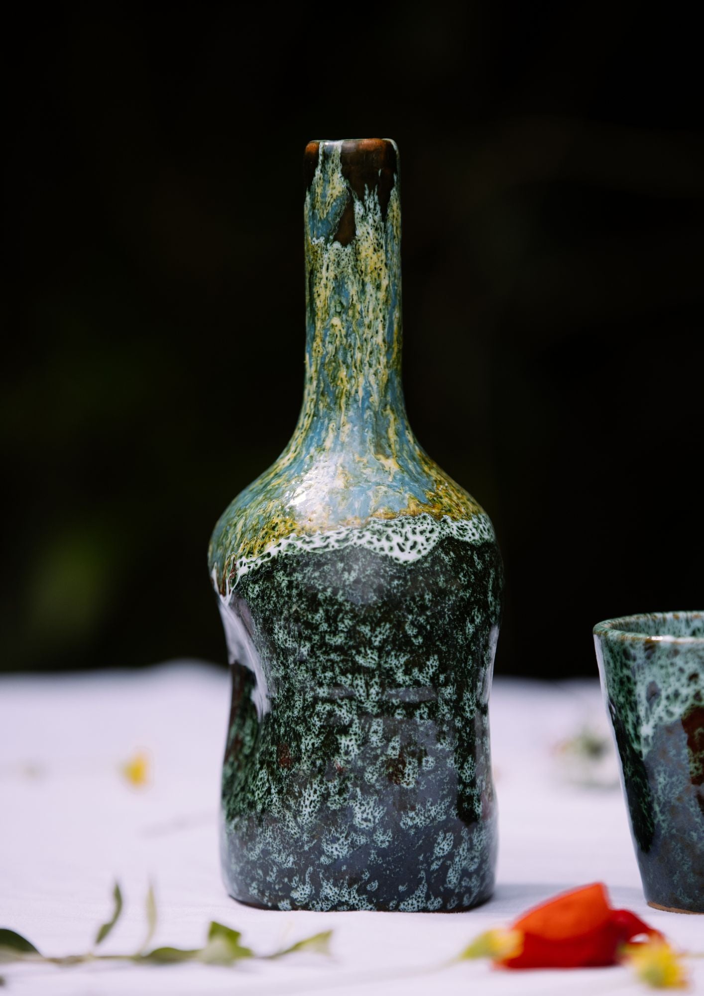 Utiliser une bouteille en céramique artisanale au moment du repas, c’est transformer un geste ordinaire en un rituel esthétique. Verser un filet d’huile sur une salade, arroser une tranche de pain encore chaude, servir du vin ou de l’eau fraîche : chaque utilisation devient un instant de plaisir sensoriel.